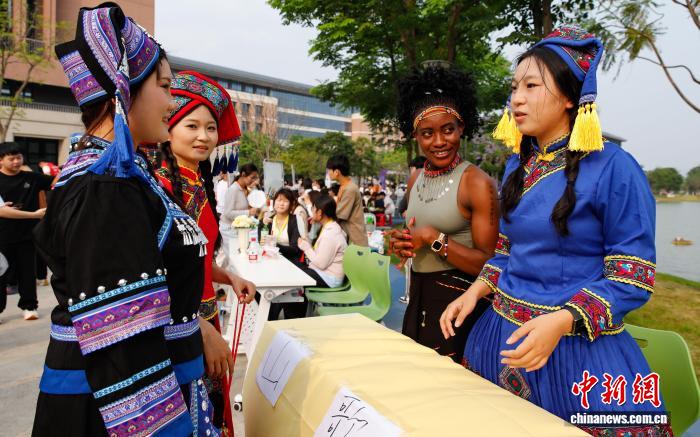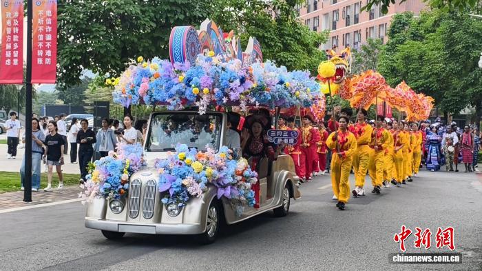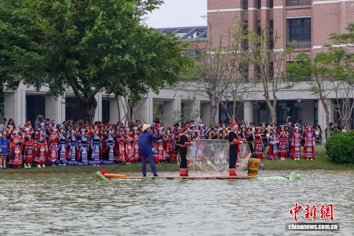图为北宁理工教院教死为肯僧亚青年挂上绣球。杨宗衰 摄