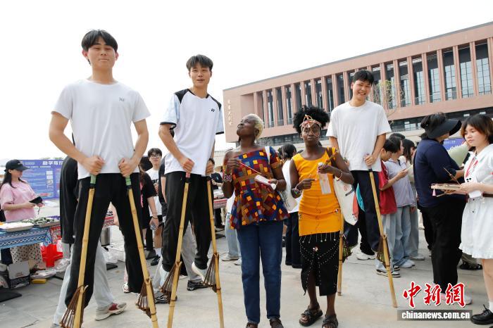 图为肯僧亚青年正在举动现场取机甲开影。杨宗衰 摄